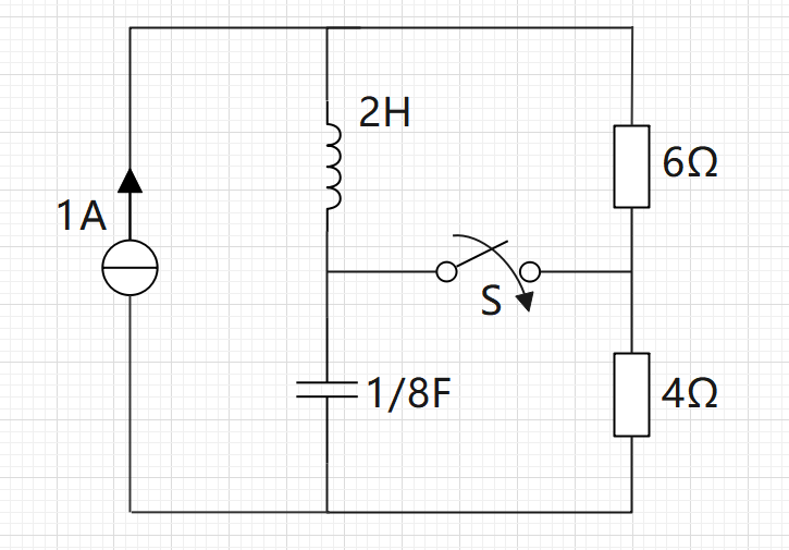 $t=0$时开关闭合,在此前电路已经达到稳态。求$t>0$时的电压$u(t)$。图中既有电容也有电感,我们一步一步看。