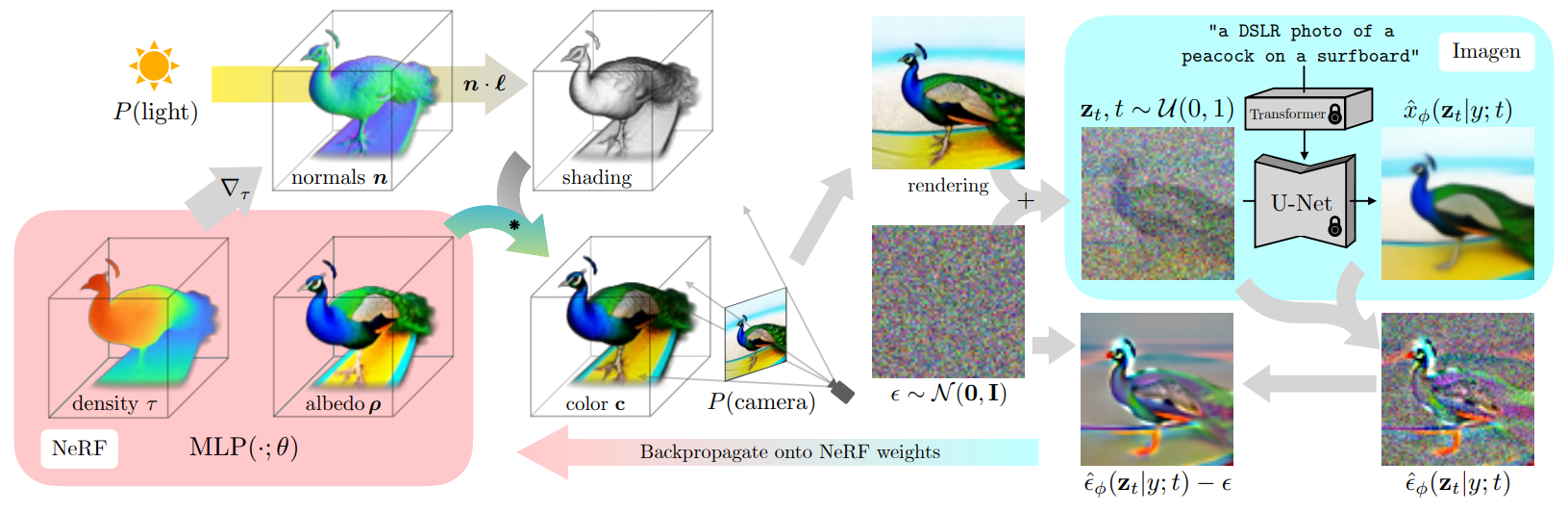 那是在2年多前,我第一次看见Dreamfusion,惊为天人,一眼万年。居然从2D的文生图模型里,可以输出一个3D的物体,自此踏上了一条不归路。当时我对Dreamfusion的理解十分粗浅,好像是说我如果把一张不好的图片加噪,然后送进预训练的diffusion里,diffusion预测的noise会是某种表示“这张图片距离diffusion期望的在指定text prompt下的图还有多远”的度量,然后要让预测的noise和真实加的noise对齐,即Score Distillation Sampling(SDS loss)。但这个思路哪怕现在想起都觉得“不是很透彻”,以及更不用提那诡谲的,忽略掉在这样推导下出现的关于diffusion backbone的梯度。