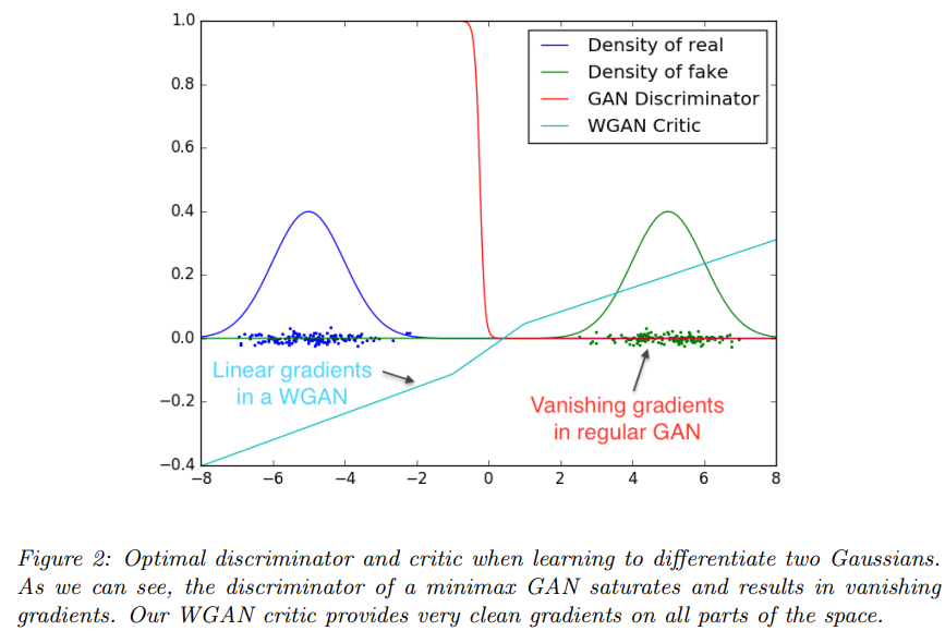 Wasserstein GAN(下文简称W-GAN)现在看来已经很早了,我第一次知道这个词的时候,还在本科,那个时候我显然没能看懂它。W-GAN原文里没什么图,有代表性的感觉是这张:
